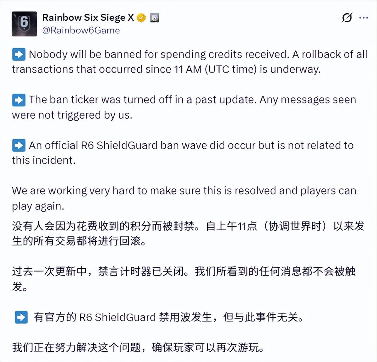 客服腐败丑闻曝光前一日,《彩虹六号:围攻》刚经历一场史诗级黑客攻击。12月27日,黑客利用后端漏洞向全球约3000万活跃玩家账户批量注入价值近339万亿美元的游戏内货币(R6点数)、声望值及稀有道具,导致服务器宕机、商城关闭,并引发大规模随机封禁。部分玩家账户被解锁限量促销道具和开发者专属皮肤,而黑客甚至操控封禁通知系统,向玩家发送针对育碧高管的侮辱性消息。
