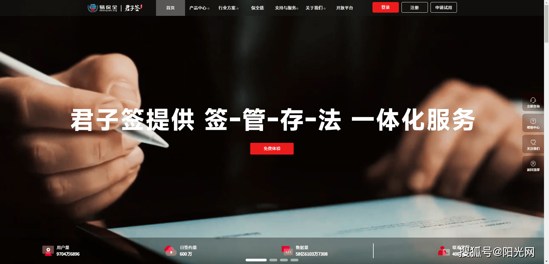 在技术层面,君子签采用国密SM2/SM3算法与RSA双证书体系,支持PDF、OFD、图片等20余种格式,提供刷脸、短信验证码、UKey等8种认证方式。其“印控中心”模块更实现实体印章与电子印章的全生命周期管理,从印章制作、审批到停用、销毁,每一步操作均留痕可溯。个人认为,君子签综合性能比较强,适合对法律风控要求极高,对区块链存证有要求的企业。