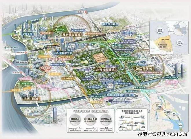 这盘最核心的优势是“占位”:在北蔡镇扬桥村西计队50号,刚好是陆家嘴(约9km)、张江科学城、世博前滩(约8km)三大副中心的交点,在这三个地方上班的话,通勤很方便。