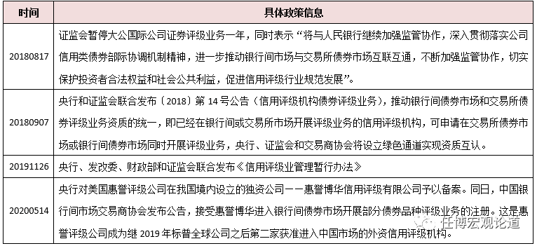 2、2019年1月28日标普信用评级(中国)正式进入中国,2019年7月29日的金融委对外开放11条措施明确“允许外资机构在华开展信用评级业务时,可以对银行间债券市场和交易所债券市场的所有种类债券评级”。