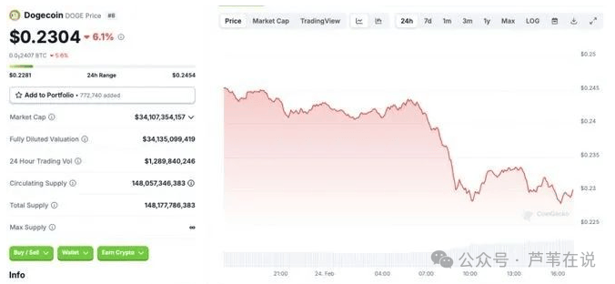 近期市场的普遍下跌,部分归因于Bybit交易所遭遇的黑客攻击。该事件导致价值14亿美元的以太坊相关代币被盗,严重打击了投资者信心,进而引发狗狗币及其他资产的回调。值得注意的是,Bybit黑客攻击之前,DOGE价格已呈现下跌趋势,而宏观经济因素如美联储暂停加息但尚未降息,也是影响加密货币市场表现的重要因素。
