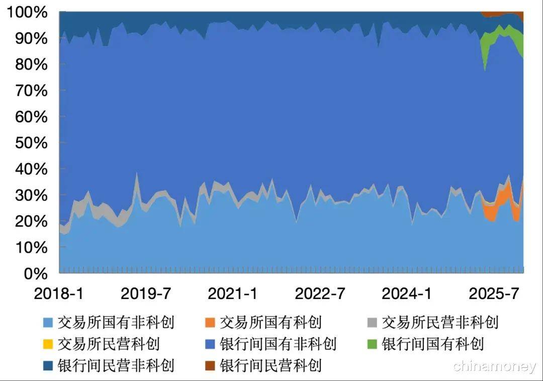 2025年5月新科创债开闸以来,相关科技创新债券发行出现了明显的增长,但发行人更多还是国有企业背景,民营企业的融资有所增长,但规模依然较小,仍需不遗余力地加大政策支持力度,推动民营经济提升债券融资比例。