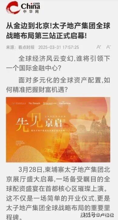 2025年初,太子集团今年初还进军北京,成立太子地产销售柬埔寨园区办的房子。